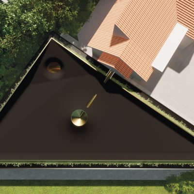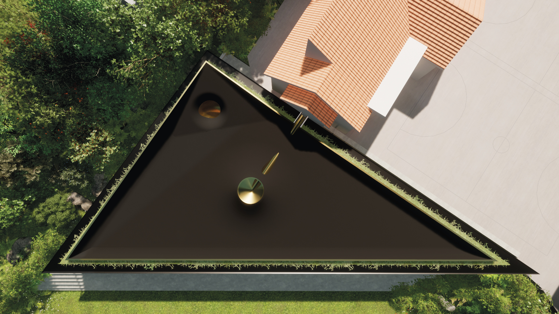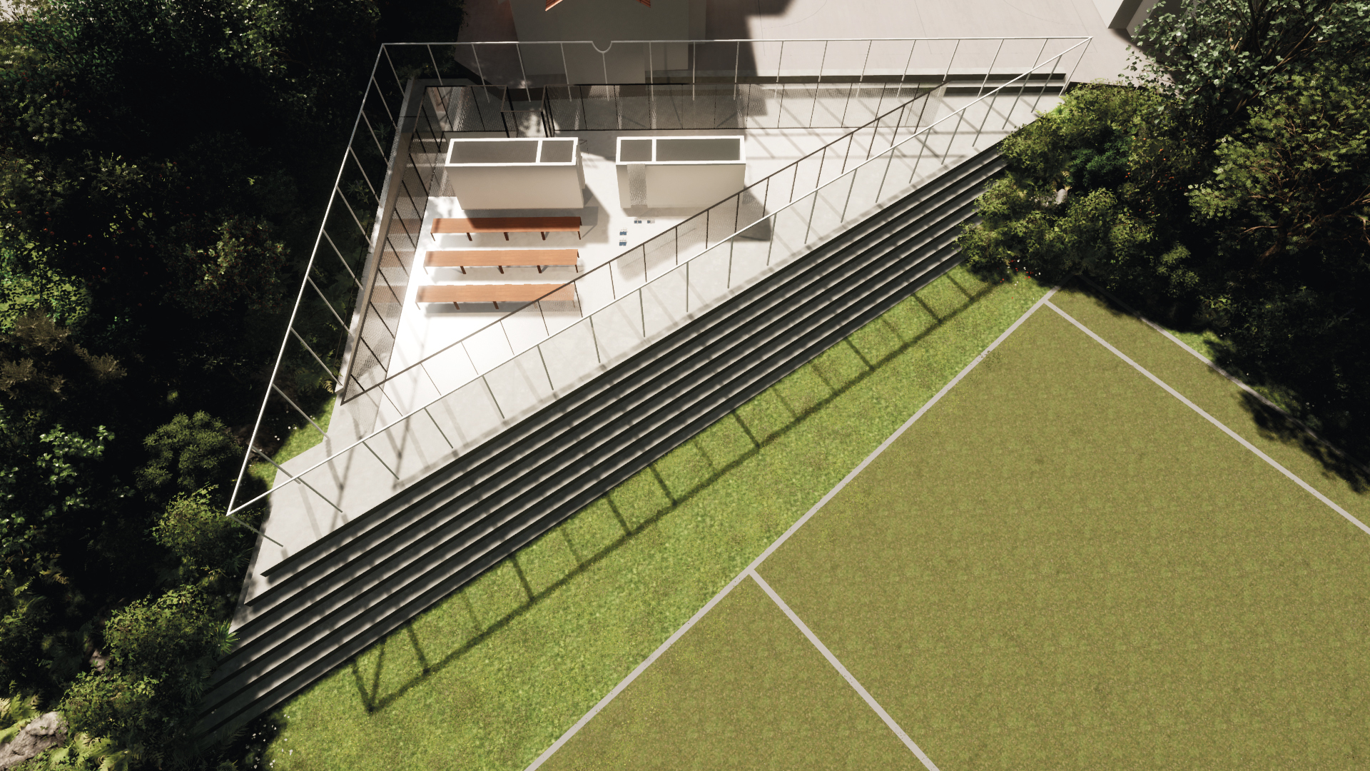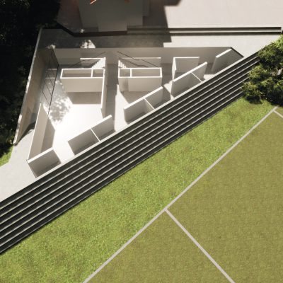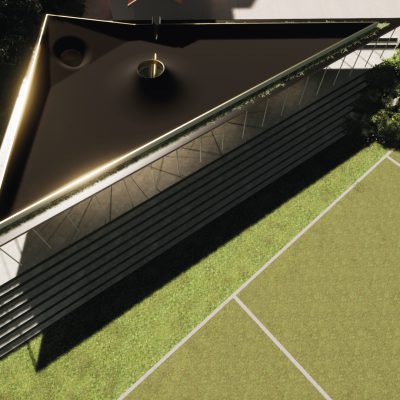 The roof is then given over to an abstract play area, where instead of it being for physical recreation, it creates a whole series of opportunities for ‘seeing’. Infinity edges carefully frame views around the edge, with curved inclined seating areas allowing for different perspectives. This roof area would be accessed from the exterior through a large freeform extrusion rather than traditional steps, using children’s rubberised play-surface material to make the whole space feel friendly and inviting, although access is still possible on the level from the existing first floor accommodation.
