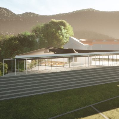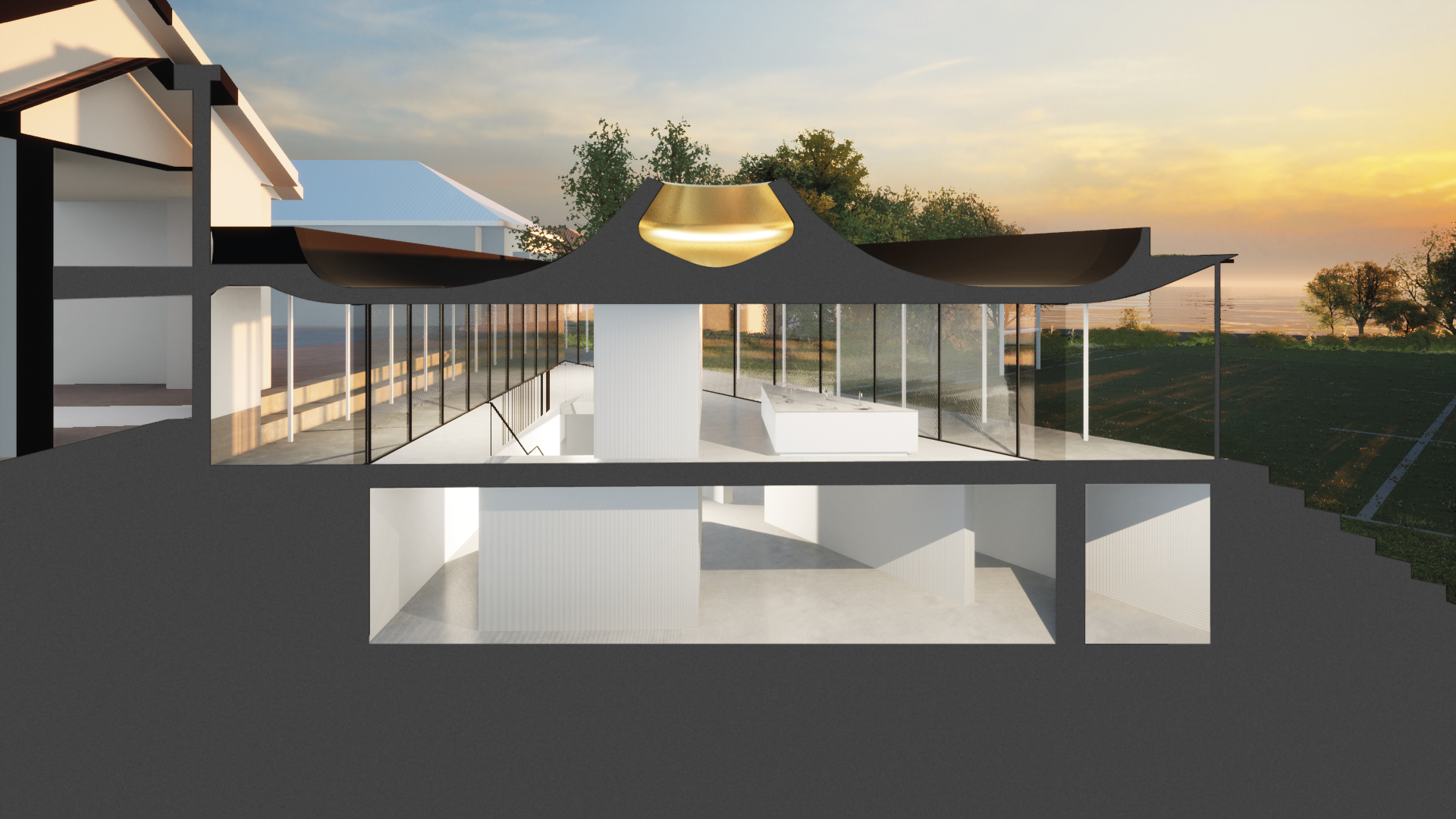 An elegant glazed pavilion is proposed, with views towards the water. Open plan gallery spaces create a sophisticated yet flexible building. External canopies allow for covered activities, including tiered seating facing the sea which can also be used for watching activities on the sports field. A large ‘playground for seeing’ is proposed for the roof, with carefully controlled views across the water, and multiple opportunities for the pupils to pause, think or ‘see’ in a fresh way.
