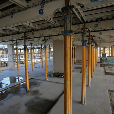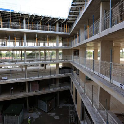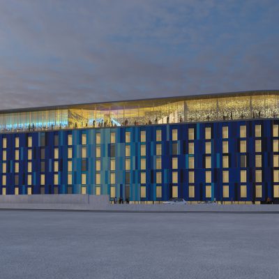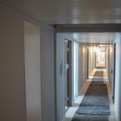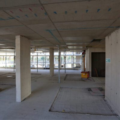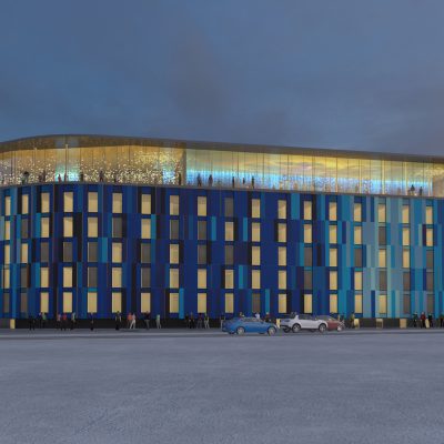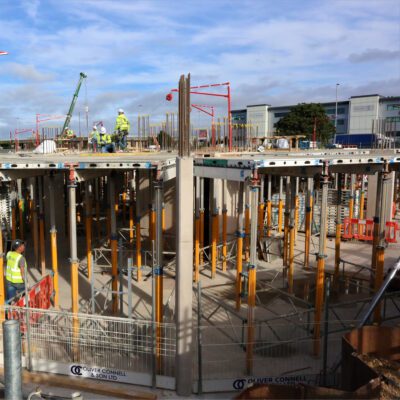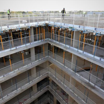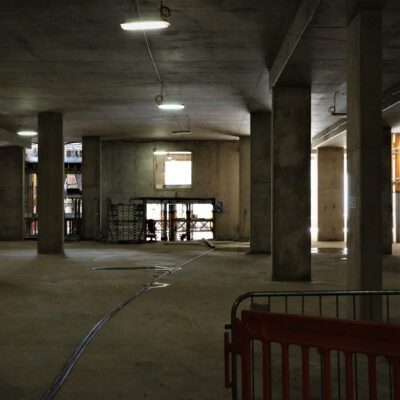 A continuous loop configuration with a central cross wing proved to be the most efficient in terms of the number of potential bedrooms, generating over 600, and also the efficiency of the cores.