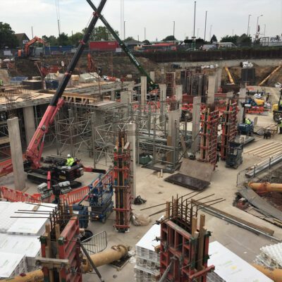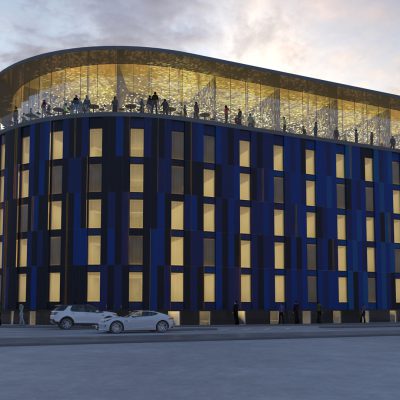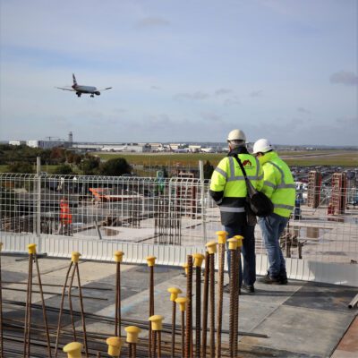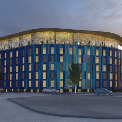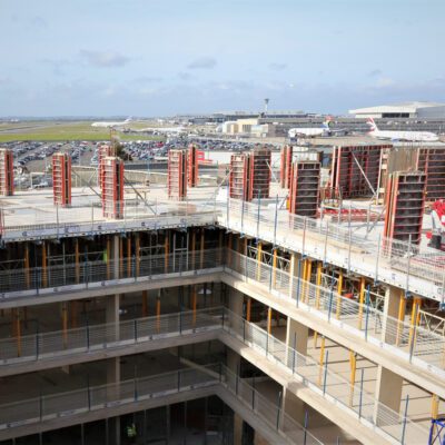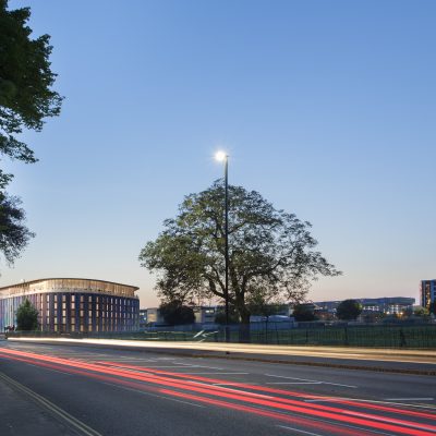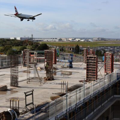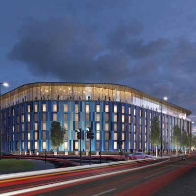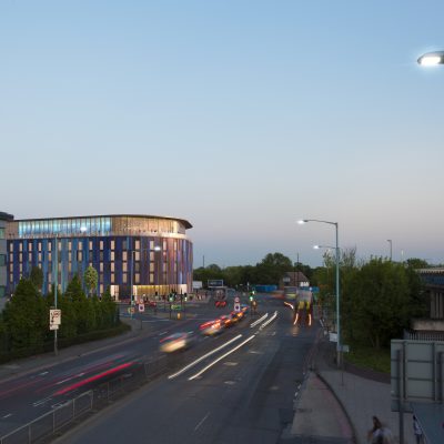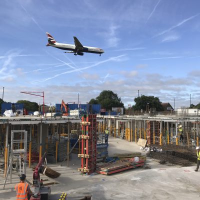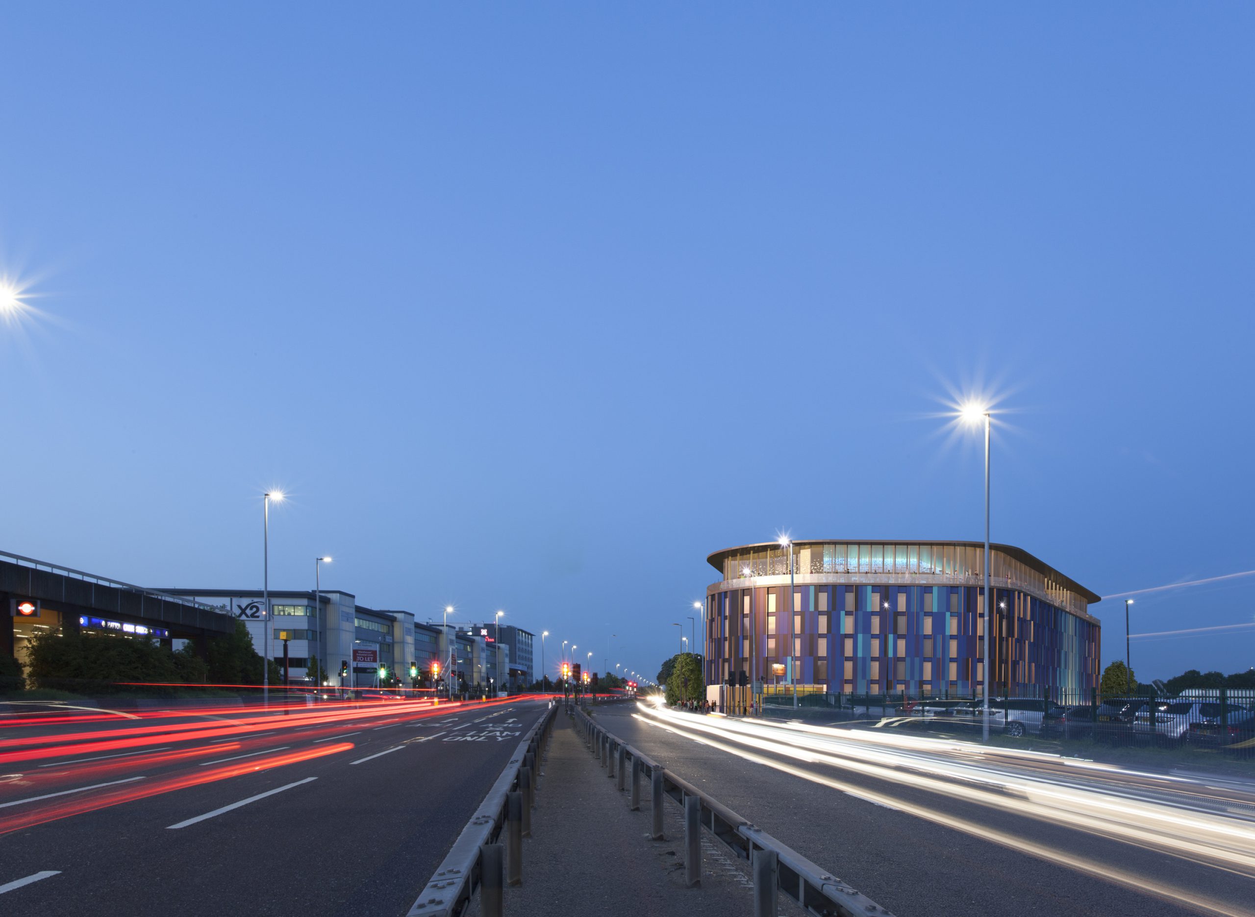 Our brief was to maximise the number of bedrooms that could be accommodated to create a new hotel on a complex island site. Site constraints included multiple road junctions, adjacent shallow level tube lines, and also aviation restrictions due to its proximity to Heathrow Airport.