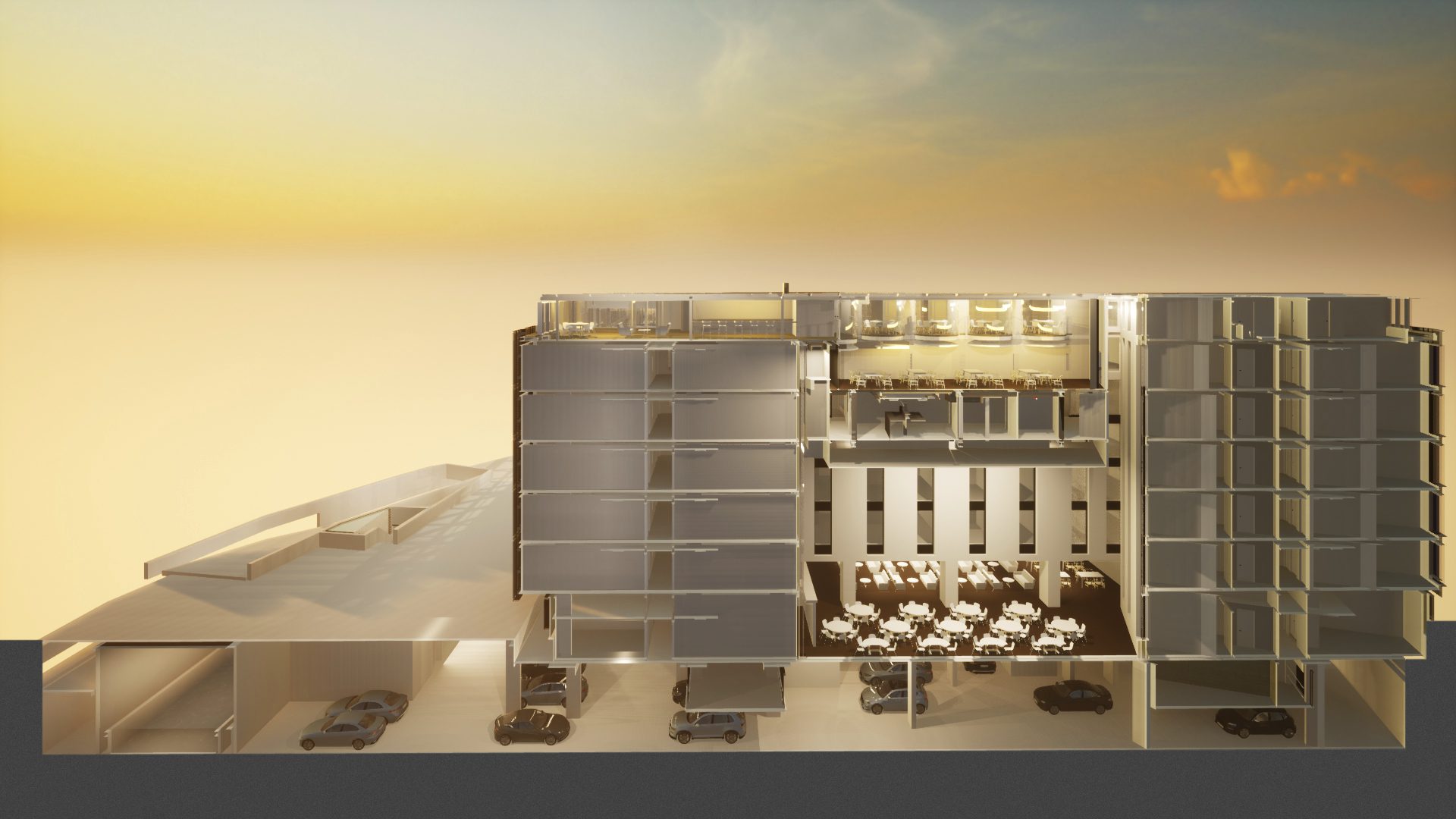 When the hotel was almost completed, the client bravely decided that they wished to create the high level reception spaces after all, and so the whole scheme was revised to accommodate what was referred to as the ‘Skybar’. This included a very large 1000 seat venue, along with a restaurant and bar overlooking the spectacular view.