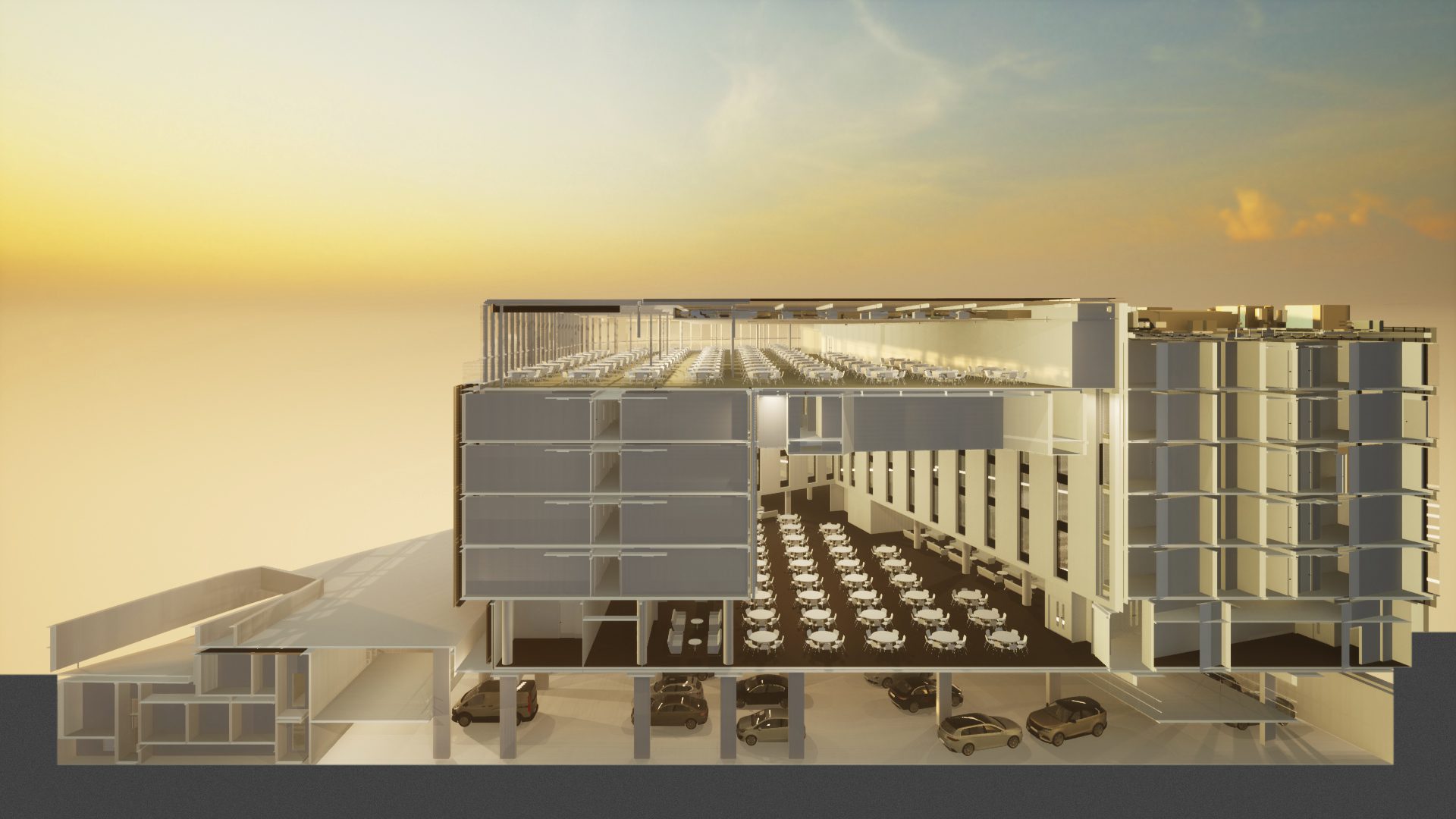 Initial designs had allowed for the majority of the reception spaces to be located on the roof, because of the amazing views of the airport and of the planes taking off and landing.