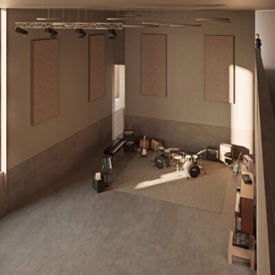 A musical family wished to create an exciting theatrical house which offered up various interesting spaces in which they could sing or perform. This was to include a large jamming room and recording space, but also several spaces where impromptu sing-alongs or performances could be undertaken.