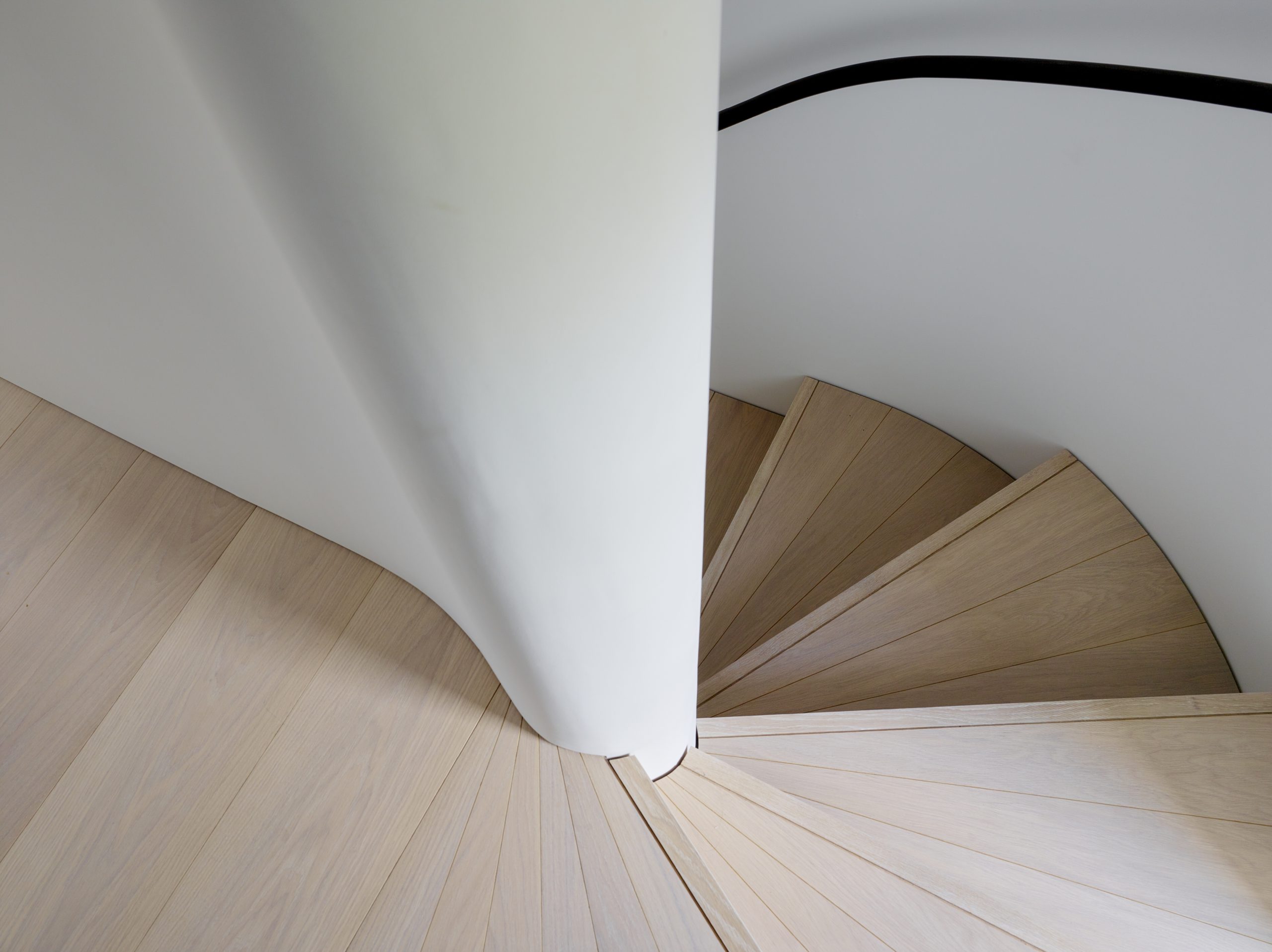 Corridors and landings were redesigned to minimise transitional spaces and optimise bedroom spaces, and the floor timber was carefully tapered in plan to introduce a detail and intimacy to the private domestic stair.