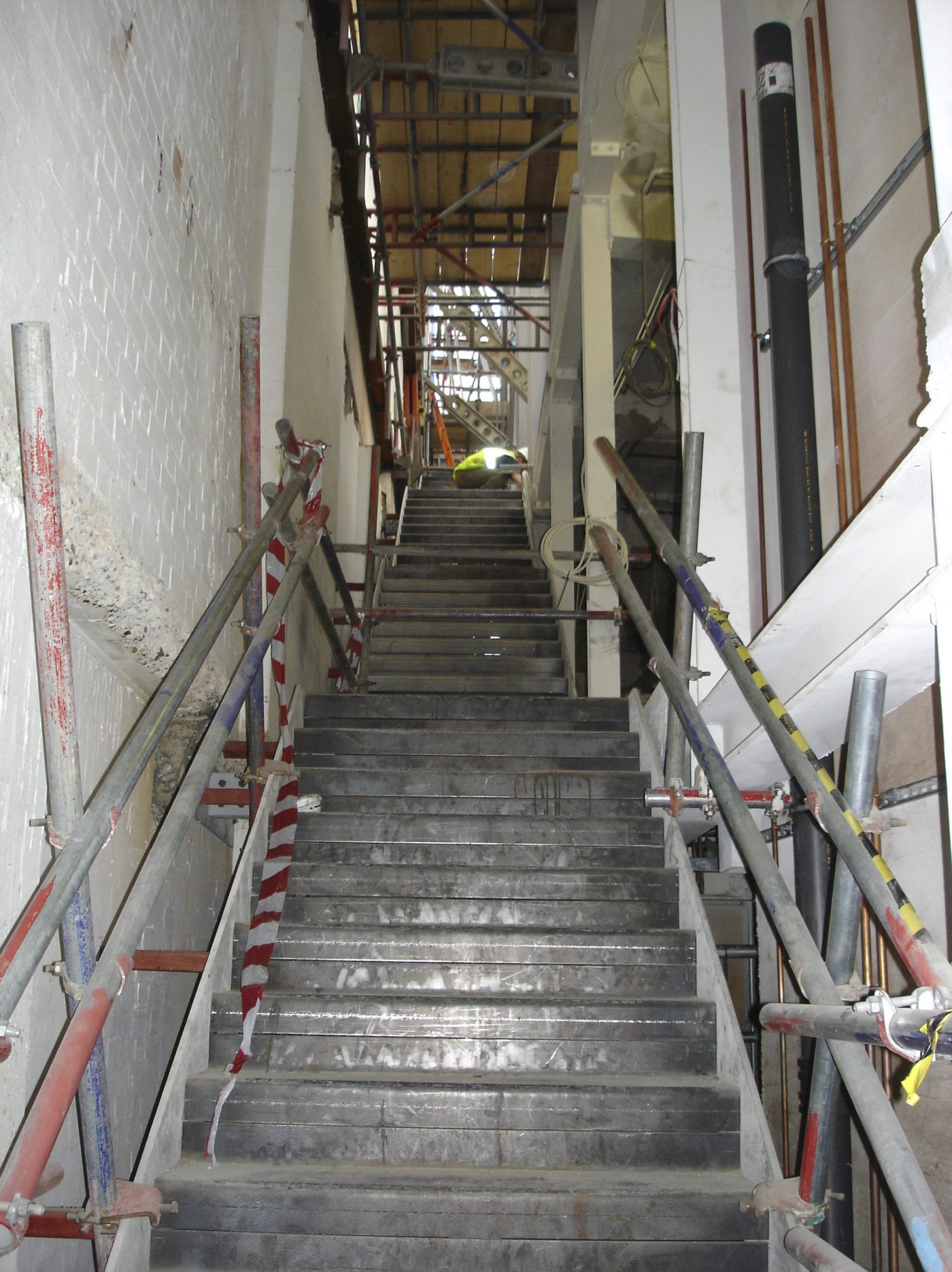 The additional staircases within the building were then placed adjacent partitions to create dramatic slices through the spaces, with the structural side walls being approximately 10 metres high against the stair width of 900mm. Each stair was prefabricated in steel before being brought to site and erected, with precision finishes applied in situ.